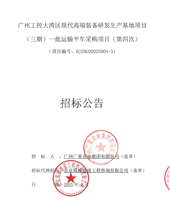 廣州工控大灣區現代高端裝備研發生產基地項目 (三期)一批運輸平車采購項目(第四次)招標公告